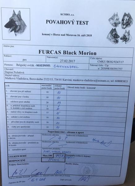 16.09.2018 Popisová přehlídka + povahový test Horka nad Moravou