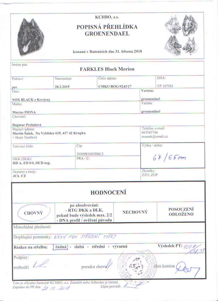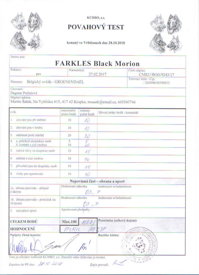 Flér Black Morion – PP+PT Vrbičany 28.10.2018, PT 96, PP 61/59